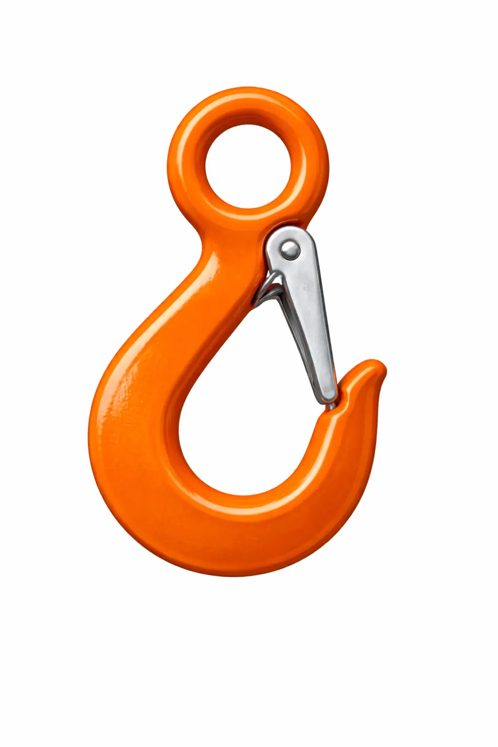 A plain eye hook with safety latch is a lifting hook equipped with a spring-loaded latch that prevents slings, chains, or wire ropes