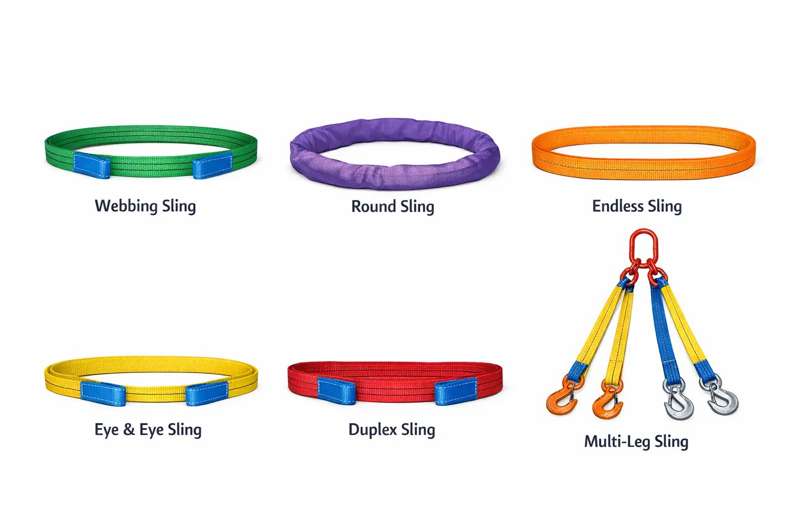 A polyester sling is a lightweight, flexible lifting sling made from high-strength polyester webbing, designed for safe lifting of delicate and finished loads.