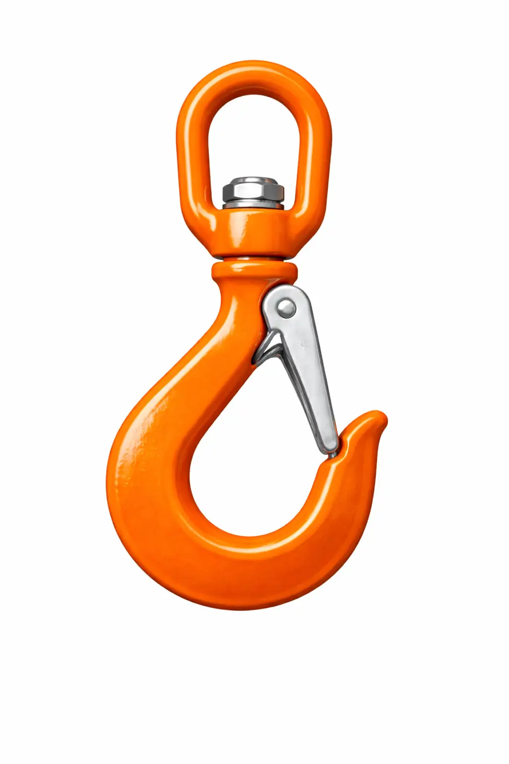 A swivel eye hook is a lifting hook designed with a rotating eye connection that allows the hook to turn freely under load.