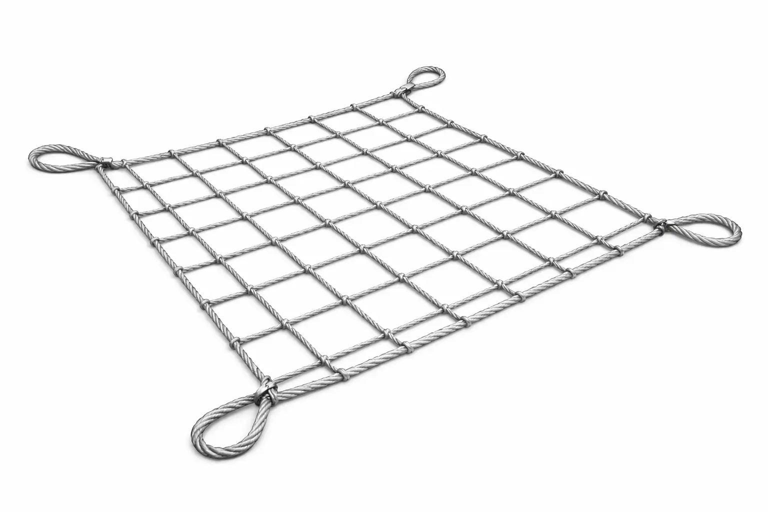 A wire rope cargo net is a heavy-duty net made from high-strength steel wire rope, designed for securing, lifting, and restraining heavy or bulky cargo.